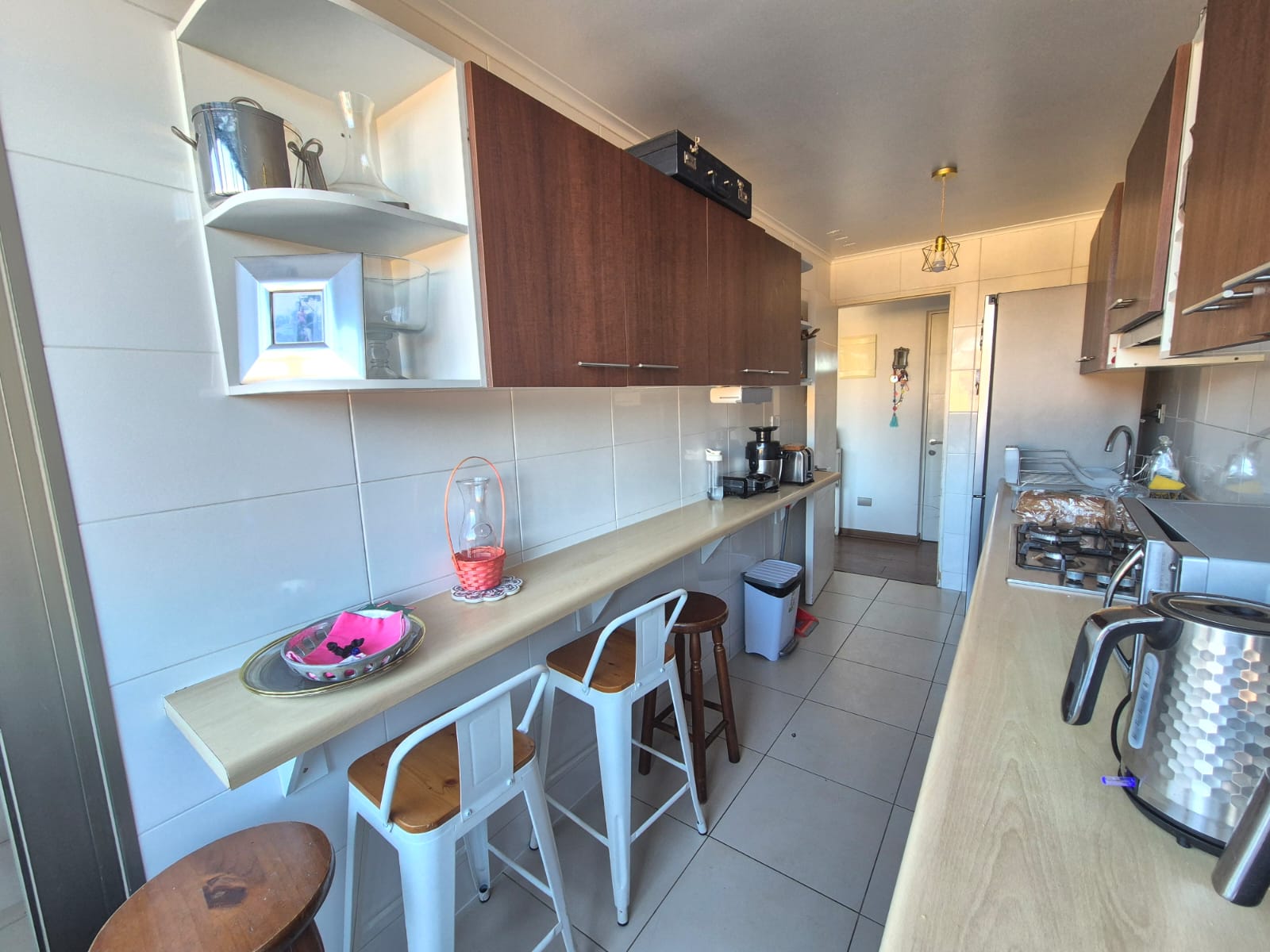 Living Comedor que se conecta con una terraza, brindando un espacio perfecto para relajarse y disfrutar de la vista. La cocina, completamente independiente, está amoblada y equipada con encimera horno y campana .También dispone de una loggia.